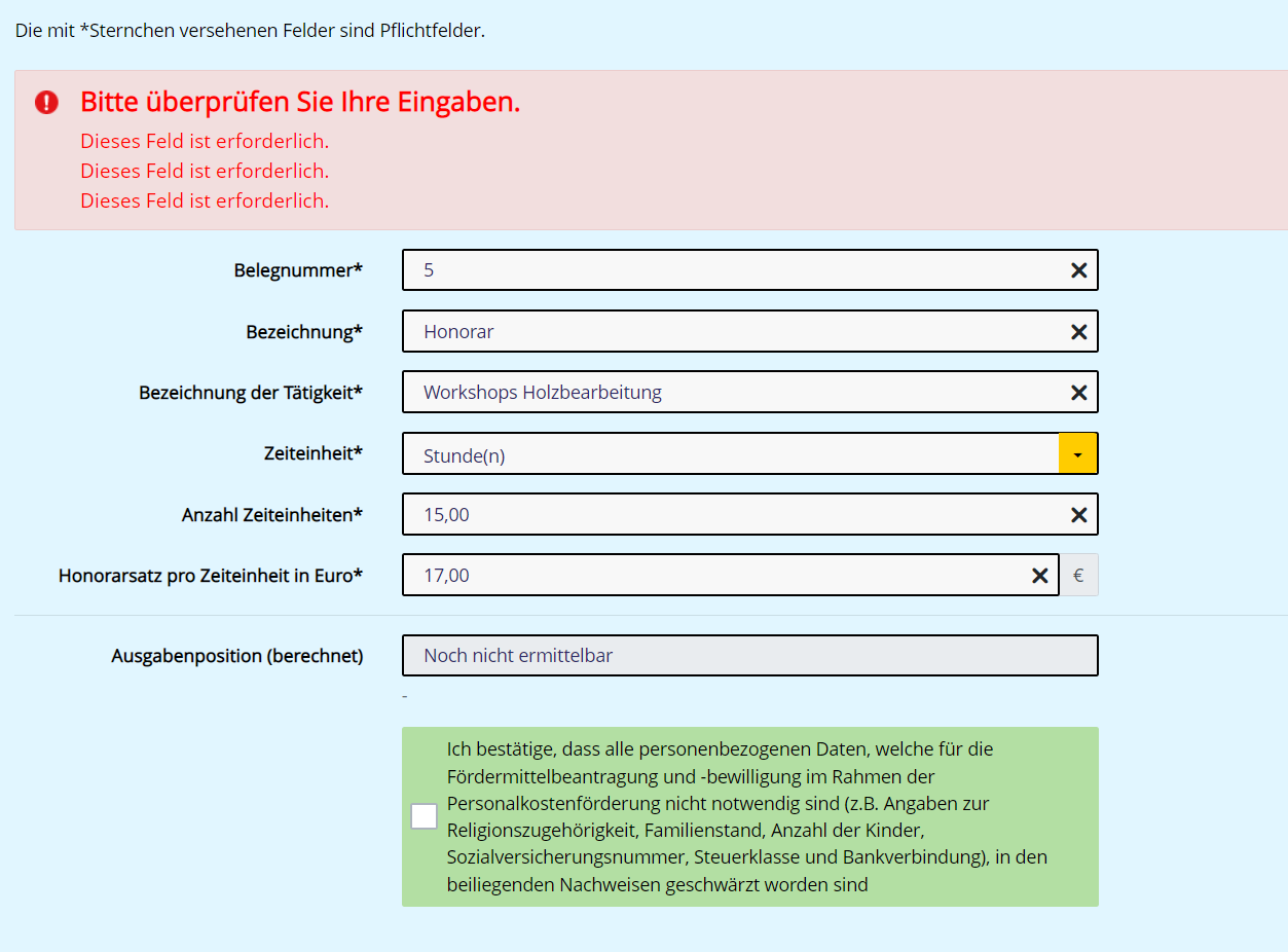Verwendungsnachweis Honorar Holzwurm