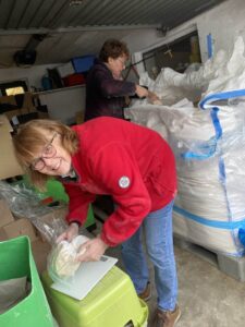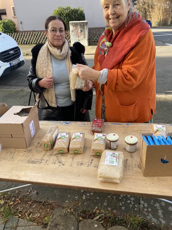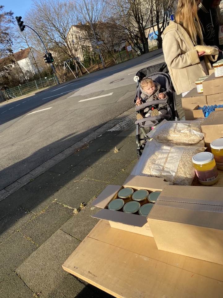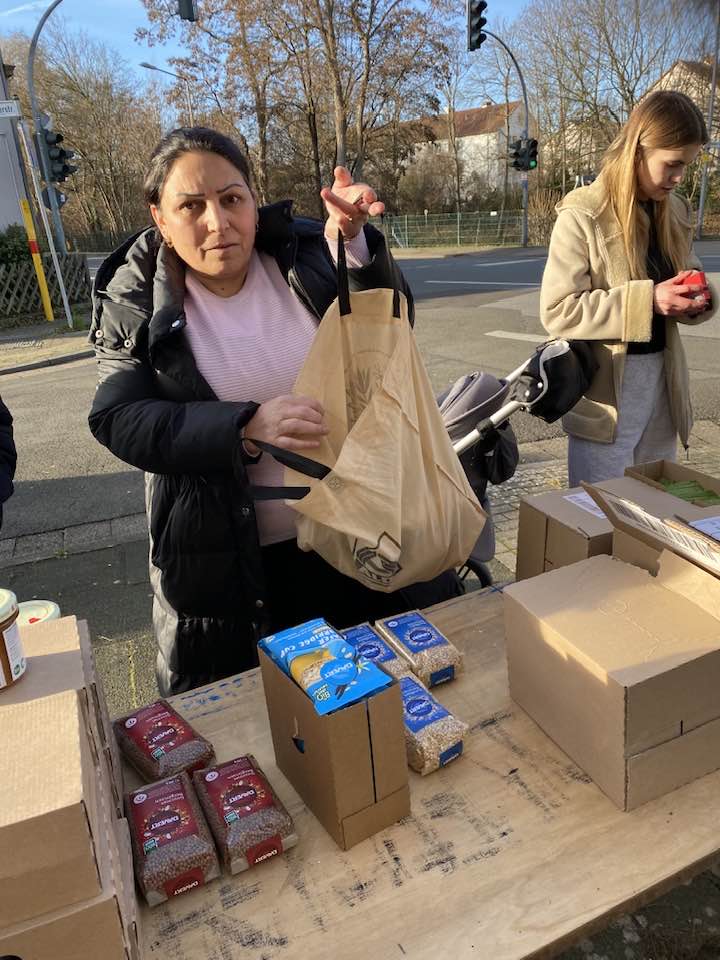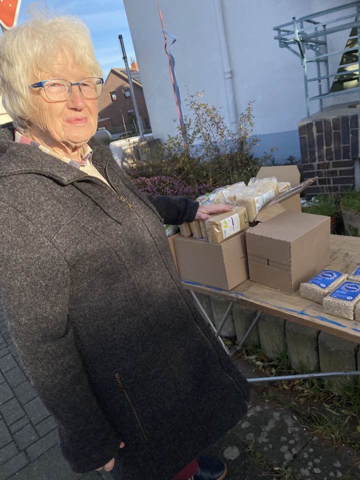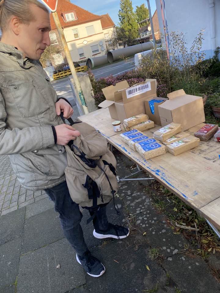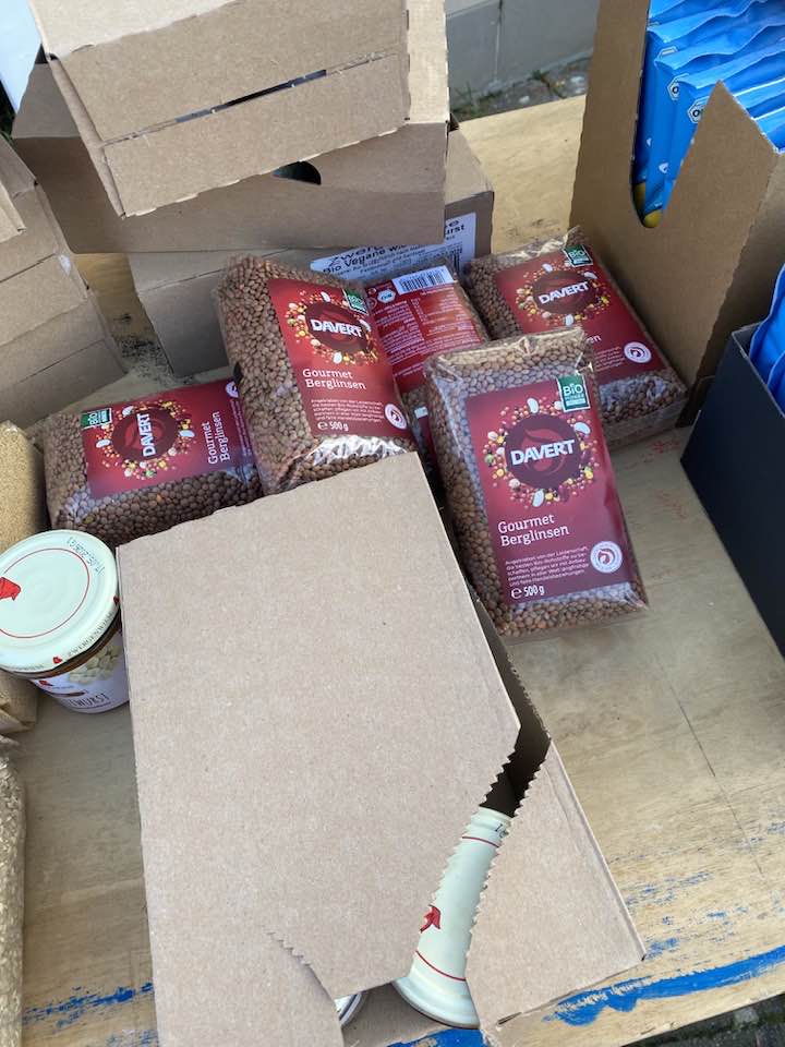 Heute haben wir wieder Lebensmittel im Quartier verschenkt. Es war eine spontane Aktion mit Susanne, Petra und Margot. Geplant war an diesem Vormittag 525 kg zuckerfreies Bio Basis Müsli von Minderleinsmühle für die Ukraine zu verpacken. Eine Spaziergängerin, die uns von der anderen Straßenseite beobachtete, fragte was wir machen, ob sie etwas bekommen könnte, sie würde auch gerne helfen.